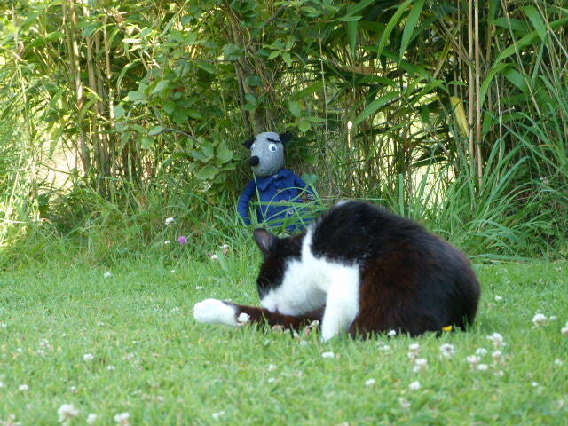 La couturière amatrice que j'étais s'est piquée les doigts, a raté les coupes, a décousu puis recousu et Grognard est apparu dans un vieux rideaux gris et une taie trouée.